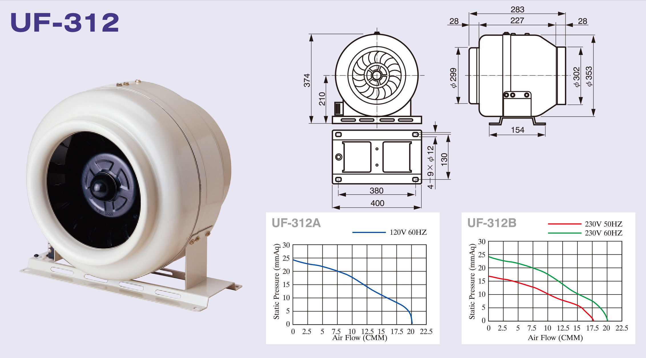 | UF-312H | 230 | 50 | 1 | 2 | 2060 | 375 | 2 | 27 | 59 | 67.5 | 13.4 |