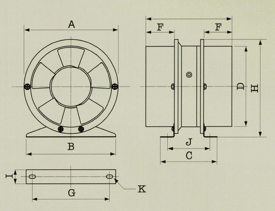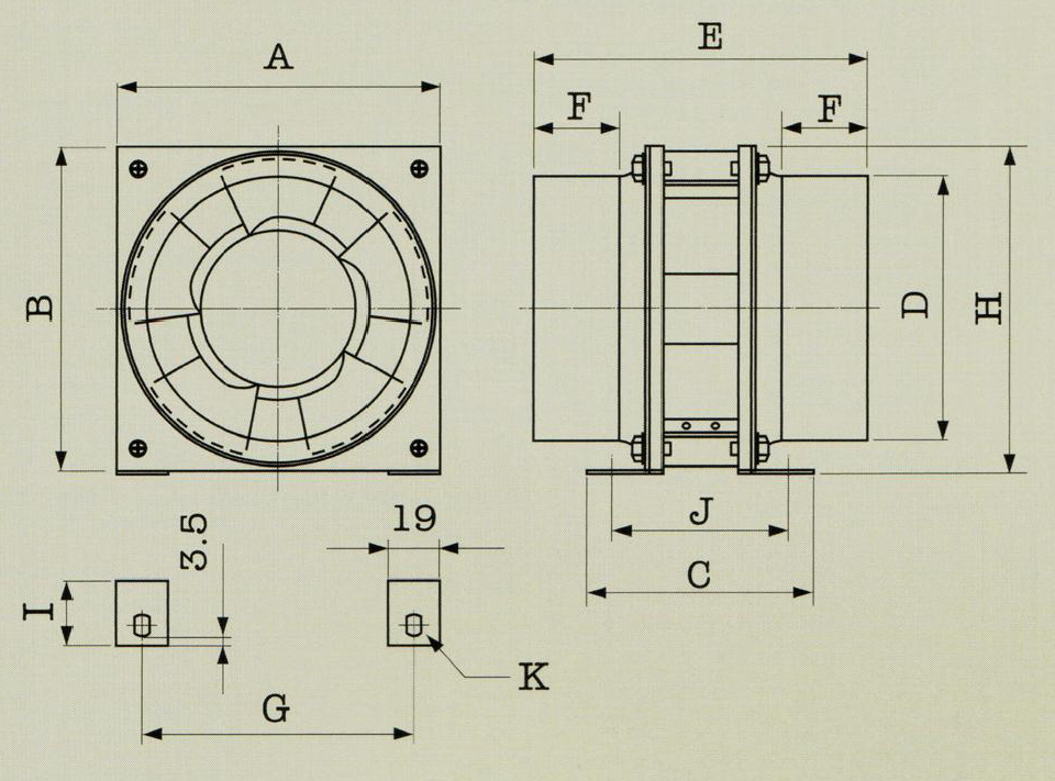 | Size | A | B | C | ⌀D | E | F | G | H | I | J | K |