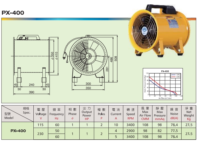 M 型 2P 多翼式抽送風機 (東元馬達)