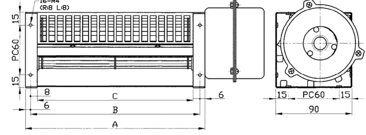 | 型號 | 葉輪長度mm | 電壓V | 馬力W | 風量CMM |
