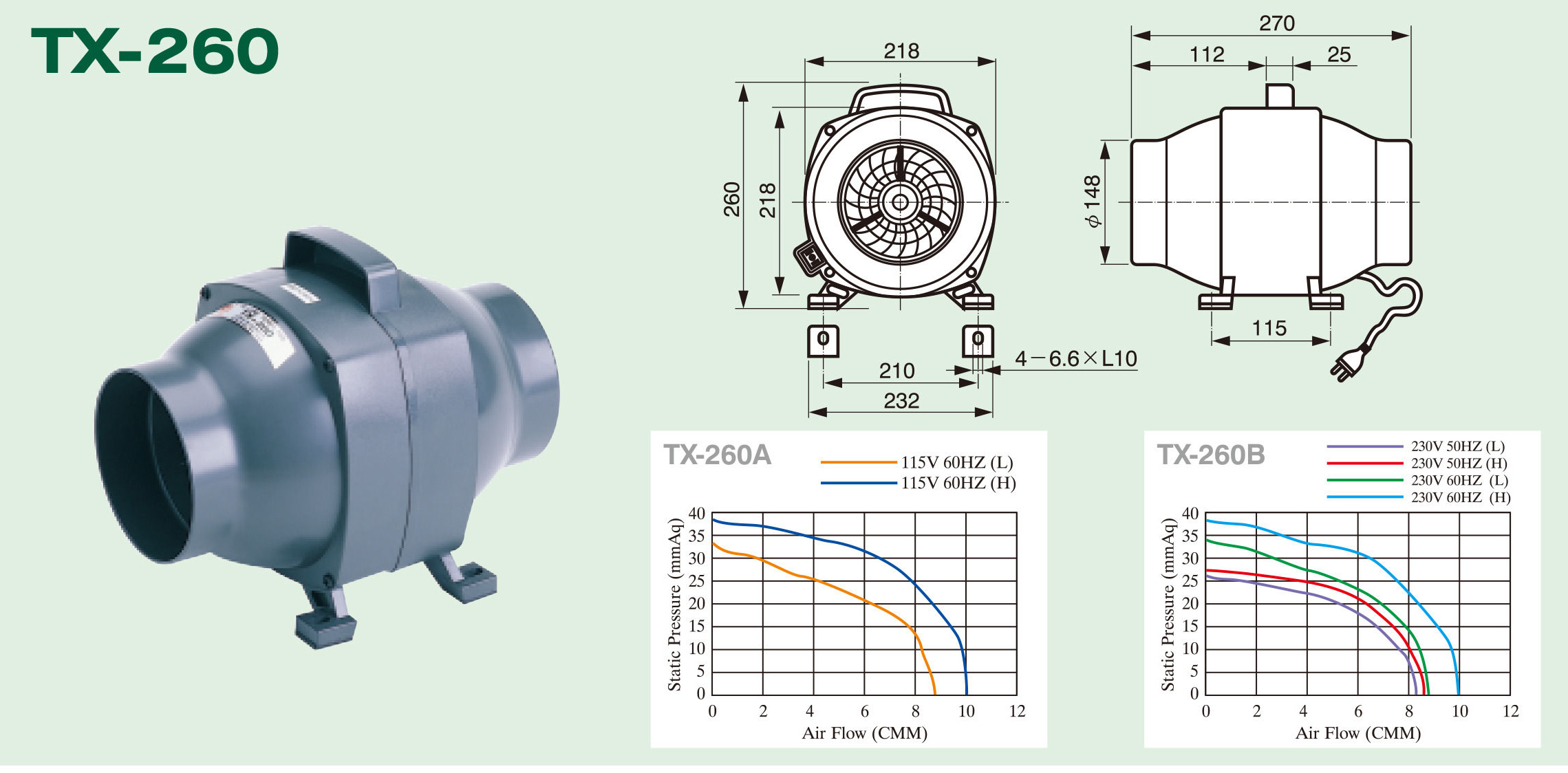 | TX-260B | 230 | 60 | 1 | 2 | 2750 (L) | 105 | 0.52 | 8.3 | 26 | 65.2 | 3.7 |