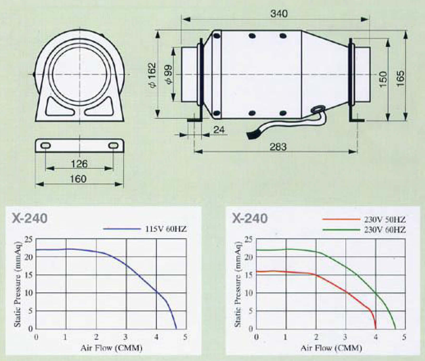 | X-240 | 115 | 60 | 1 | 2 | 3200 | 75 | 0.75 | 4.7 | 22 | 60.5 |